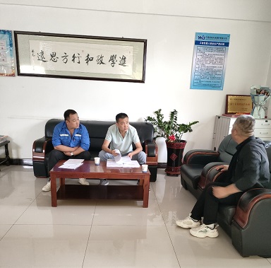 2025年9月20日下午,銀川市生態(tài)環(huán)境局局長牛進(jìn)頻帶領(lǐng)永寧分局一行來天琛公司考察超低排放改造情況,總經(jīng)理郭冠明、工藝質(zhì)量副總張耀宗、安環(huán)部長孔華全程陪同。